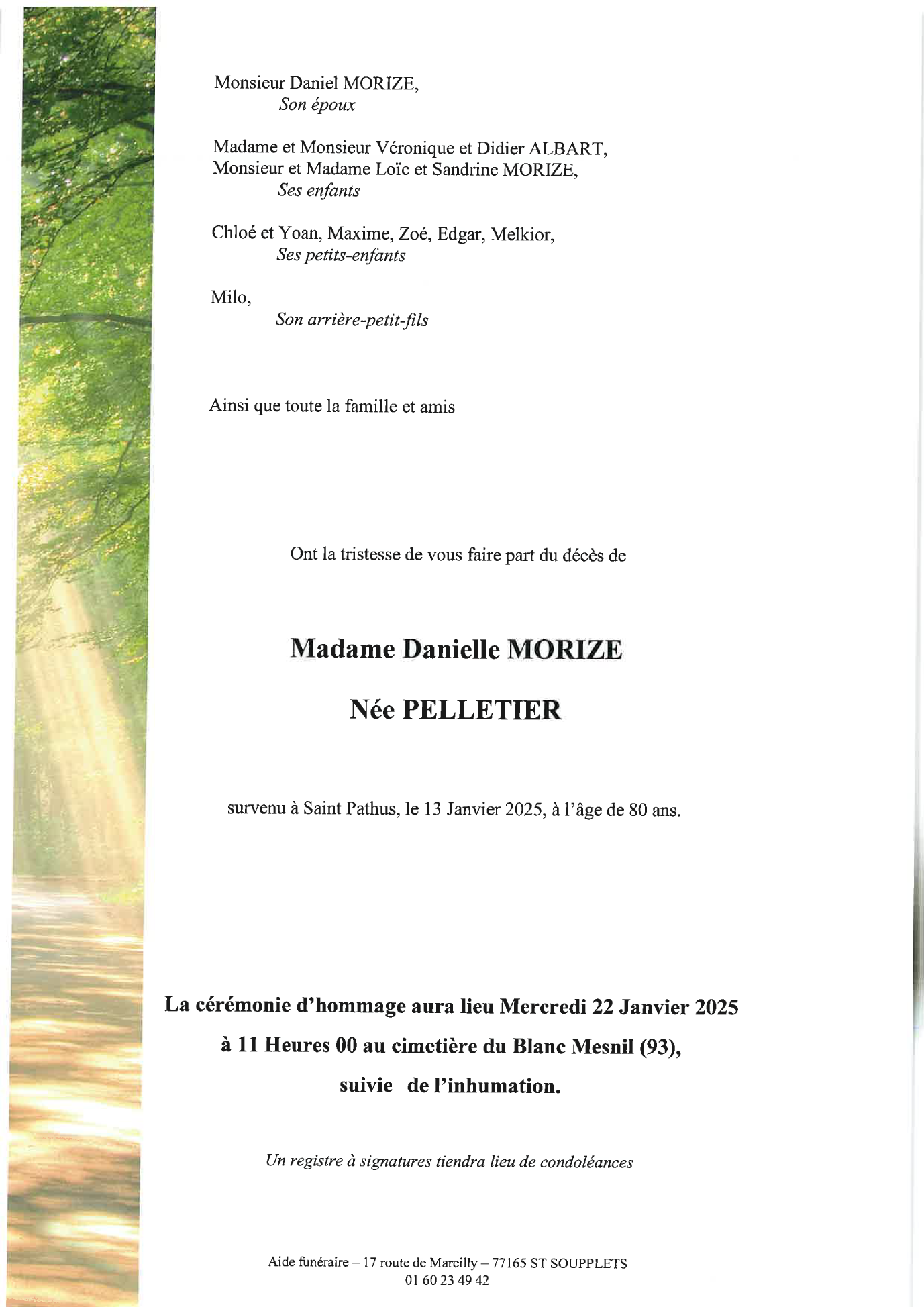 Madame Danielle MORIZE née PELLETIER