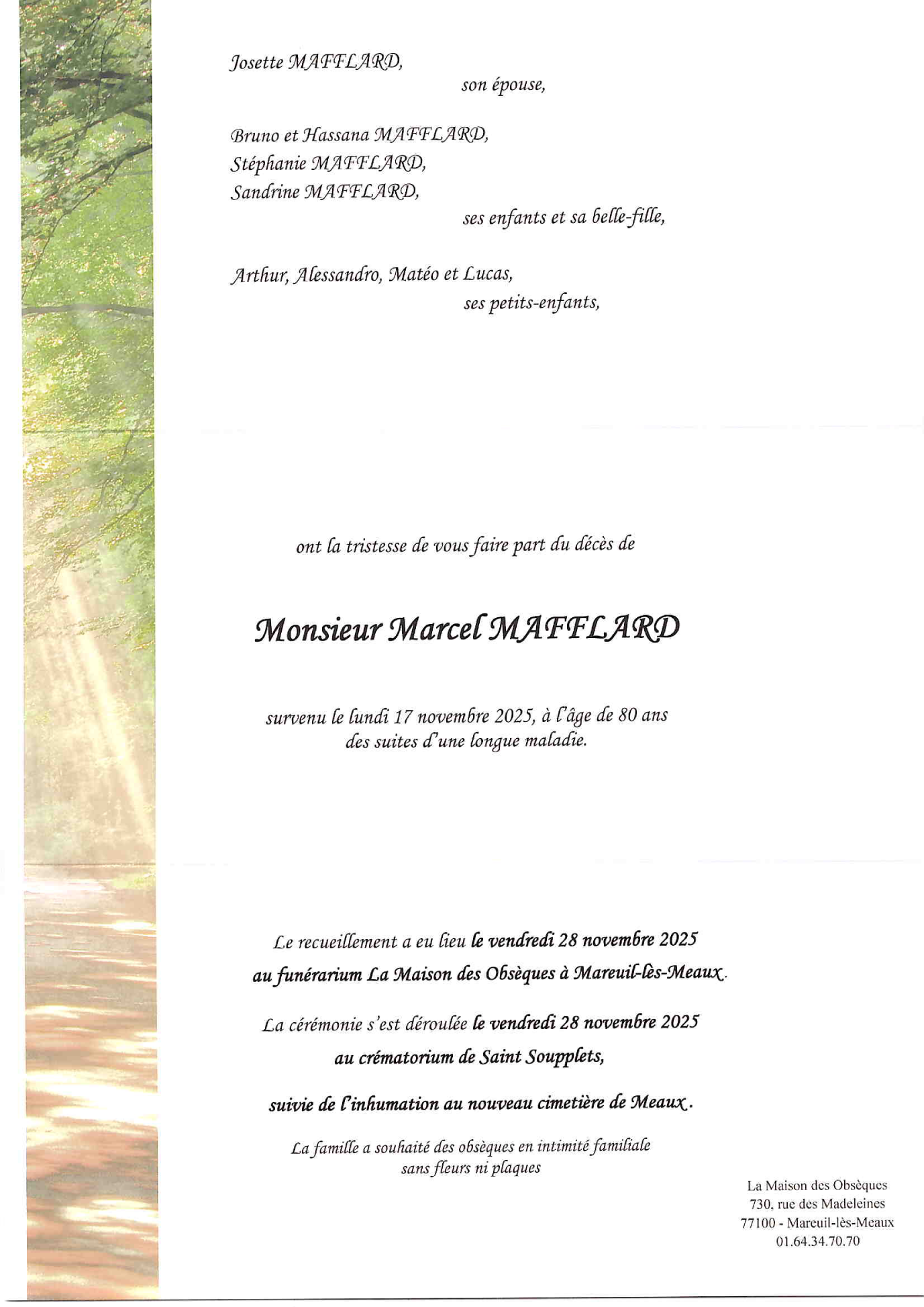 Décédé à Mareuil-lès-Meaux (77100, France) le lundi 17 novembre 2025 à l'âge de 80 ans