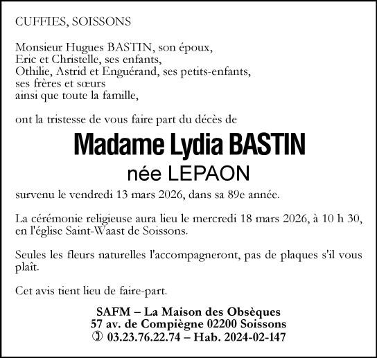 Madame Lydia BASTIN née LEPAON