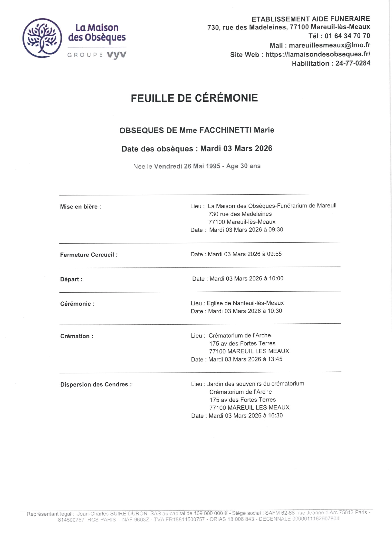 Décédée à La Roche-Guyon (95780, France) le samedi 21 février 2026 à l'âge de 30 ans
