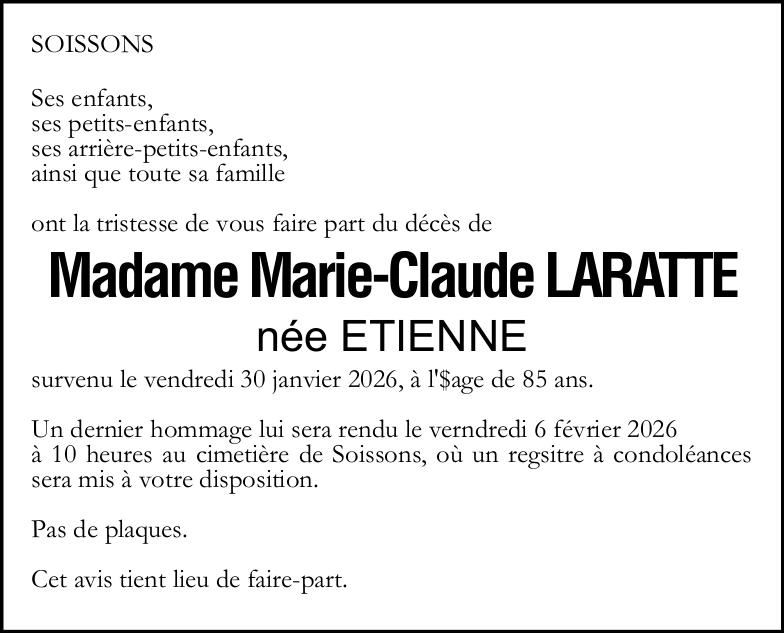 Madame Marie-Claude LARATTE née ETIENNE