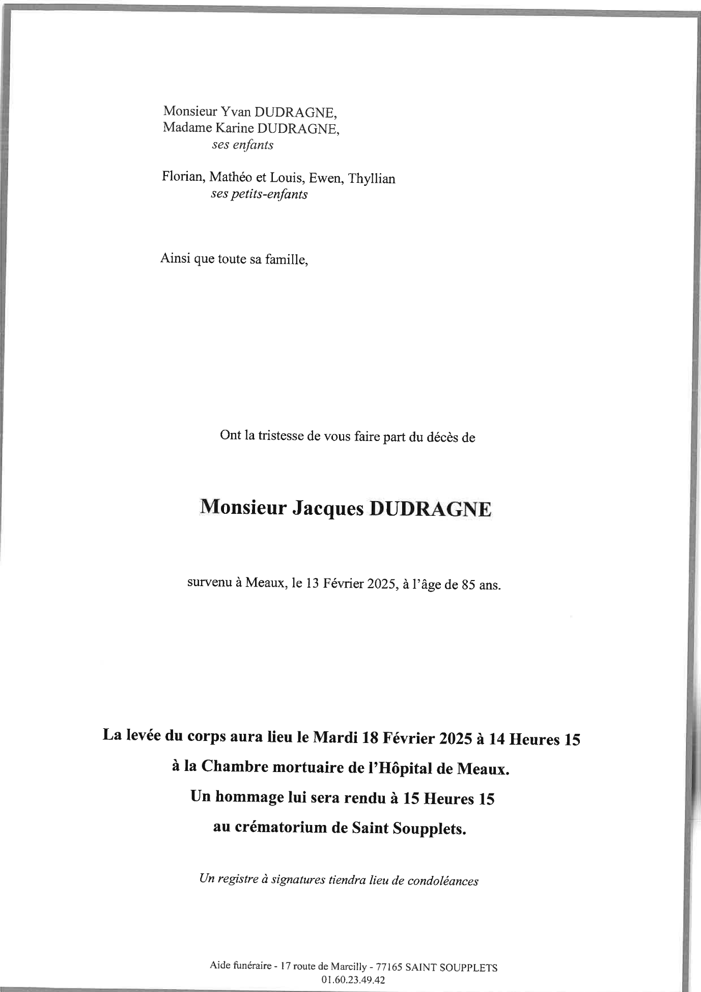 Décédé à Meaux (77100, France) le jeudi 13 février 2025 à l'âge de 84 ans