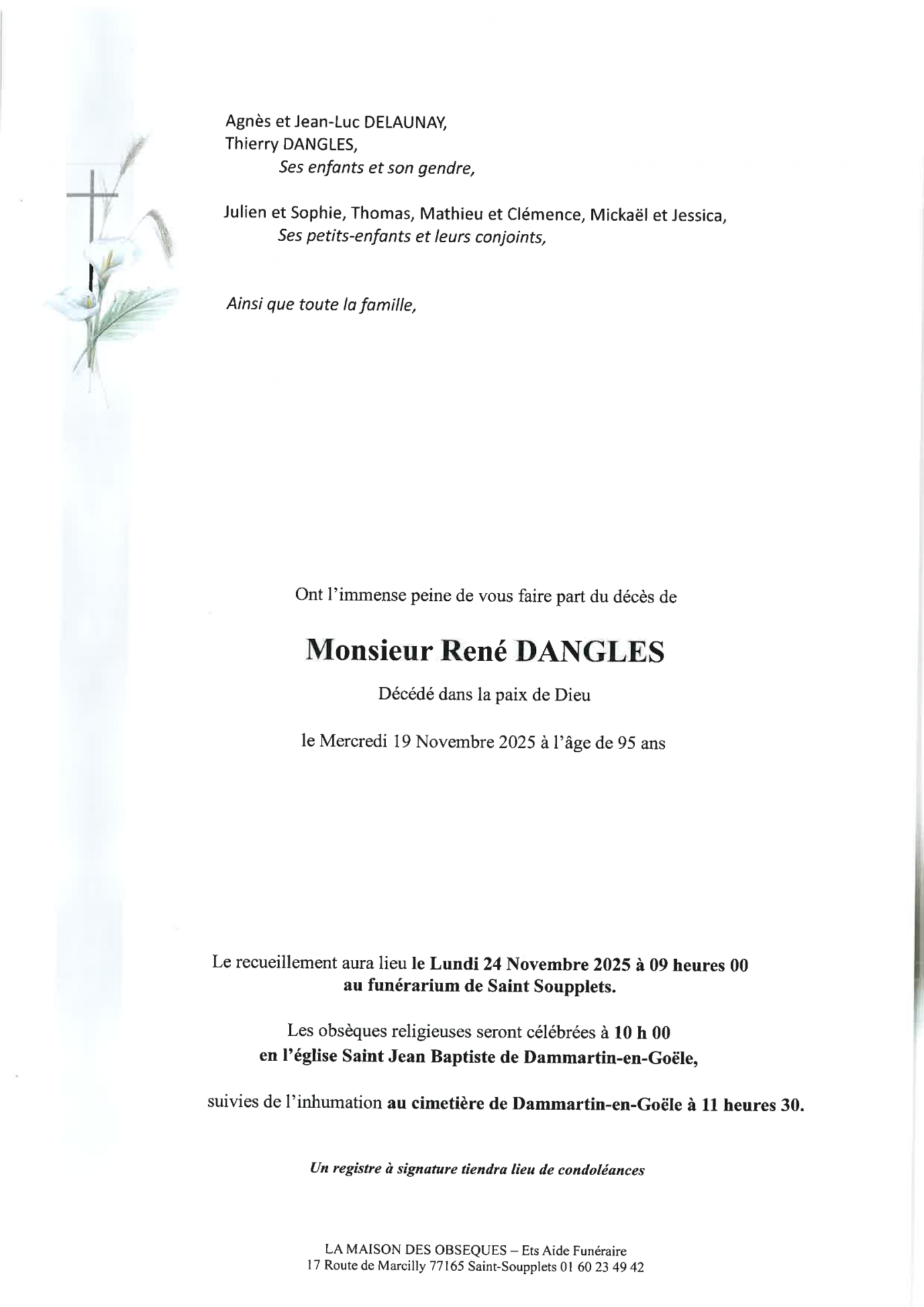 Décédé à Dammartin-en-Goële (77230, France) le mercredi 19 novembre 2025 à l'âge de 95 ans