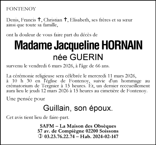Décédée à Soissons (02200, France) le vendredi 6 mars 2026 à l'âge de 66 ans